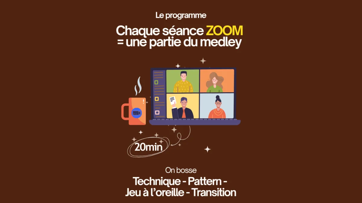 À chaque séance de 20 min sur ZOOM, on va travailler 4 éléments :